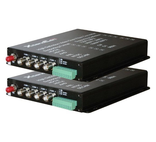 4kanálový univerzální optický konvertor pro všechny analogové HD a SD systémy, 4x HD-CVI/AHD/TVI/PAL v rozlišeních 1080p, 720p a CVBS, přenos po jednom optickém vlákně, single mode i multimode, zpětný přenos 1x RS-485 jednosměrně, dosah 20 km na single mode vlákně, 2 km po multimode vlákně, ST optický konektor, WDM 1310/1550 nm, možnost montáže na zeď, RS-485 s přepěťovou ochranou, především pro souběžný přenos obrazu a ovládání kamer, pár vysílač a přijímač.