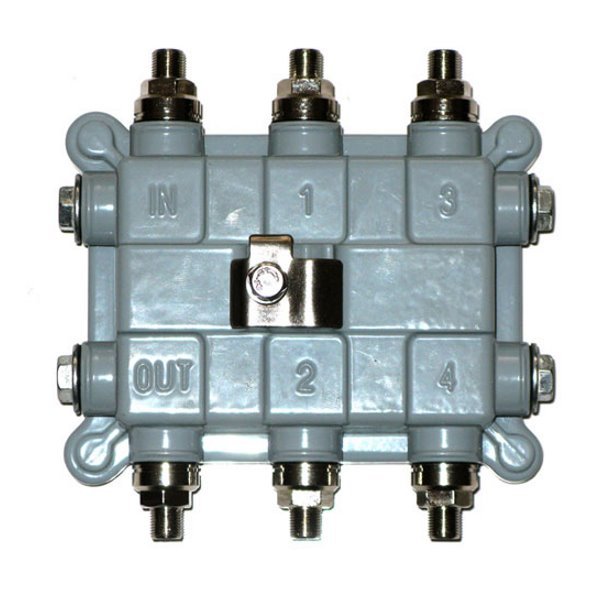 Odbočovač/slučovač/bridge pro EoC systém v pásmu 7-65 MHz. Slouží pro situace kdy je třeba signál již obsahující EoC komunikaci zesílit linkovým zesilovačem nebo je nutné injektovat napětí do vedení nebo chceme datový signál do dvou nezávislých větví. Přenáší i napětí AC do 60 V. Vodotěsný, konektory F female, 6 portů.