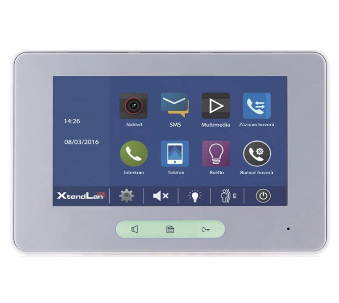 Bytový monitor, pro D2, 7" barevný TFT, dotyková obrazovka+tlačítka, paměť, stříbrno-bílý, CZ