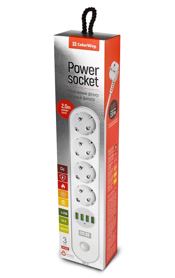 ColorWay CW-CHE44W 4 zásuvky 2m