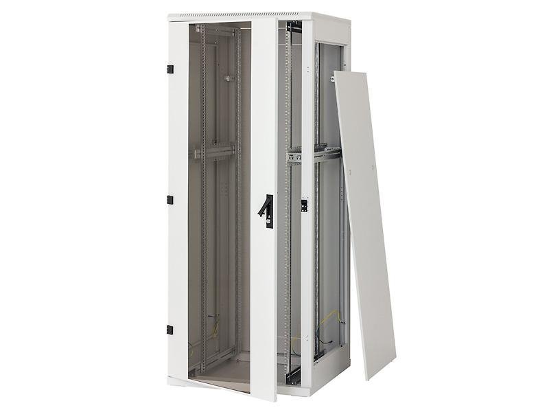 Svařovaný rozvaděč s odnímatelnými bočnicemi a zadním krytem s krytím IP20, nosnost 400 kg. Dveře skleněné s bezpečnostním tvrzeným sklem 4 mm.