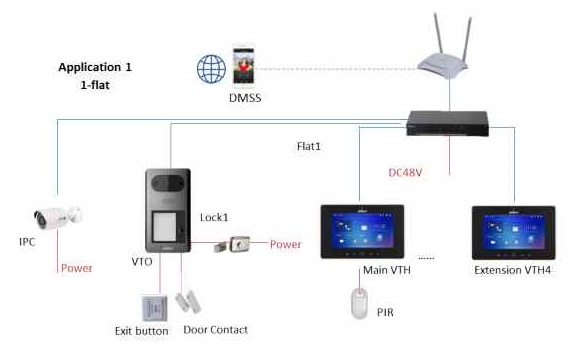 Dveřní stanice se instaluje na omítku, je vyrobena z kvalitních materiálů jako je hliník spolu s odolností vůči nepříznivým vlivům dle certifikace IP65 a IK08 zaručuje dlouhou životnost. Umožňuje přímé volání do mobilní aplikace DMSS i bez připojeného VTH monitoru.