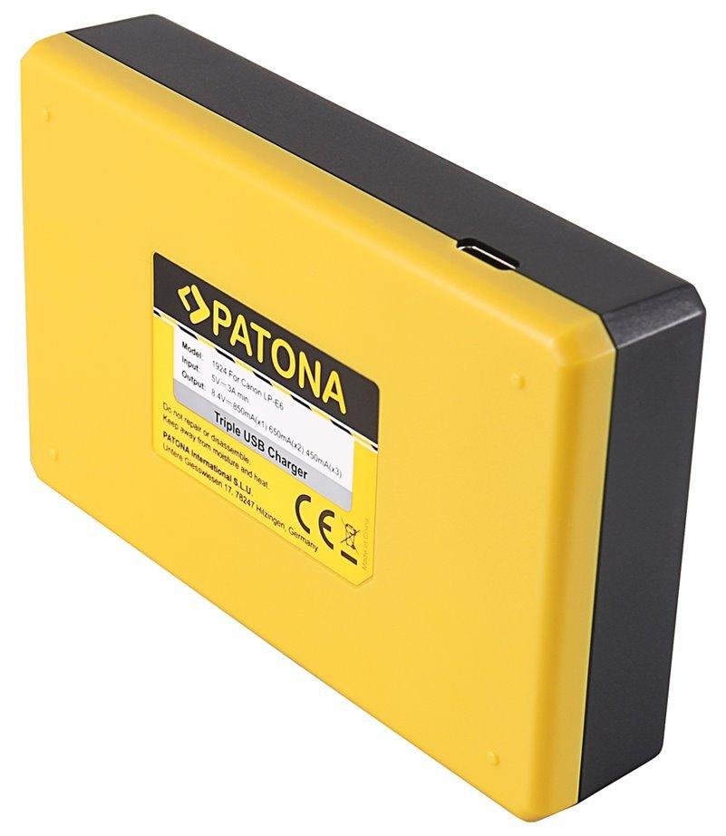S nabíječkou Patona Triple lze nabíjet současně až 3 baterie. Na LCD displeji se zobrazuje aktuální stav nabití baterie. Napájení nabíječky je realizováno skrze standardní USB port pomocí dodaného kabelu USB typu C. Nabíječky jsou vyráběny dle nejvyšších evropských standardů kvality a vyznačují se extrémně dlouhou životností.