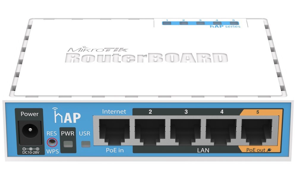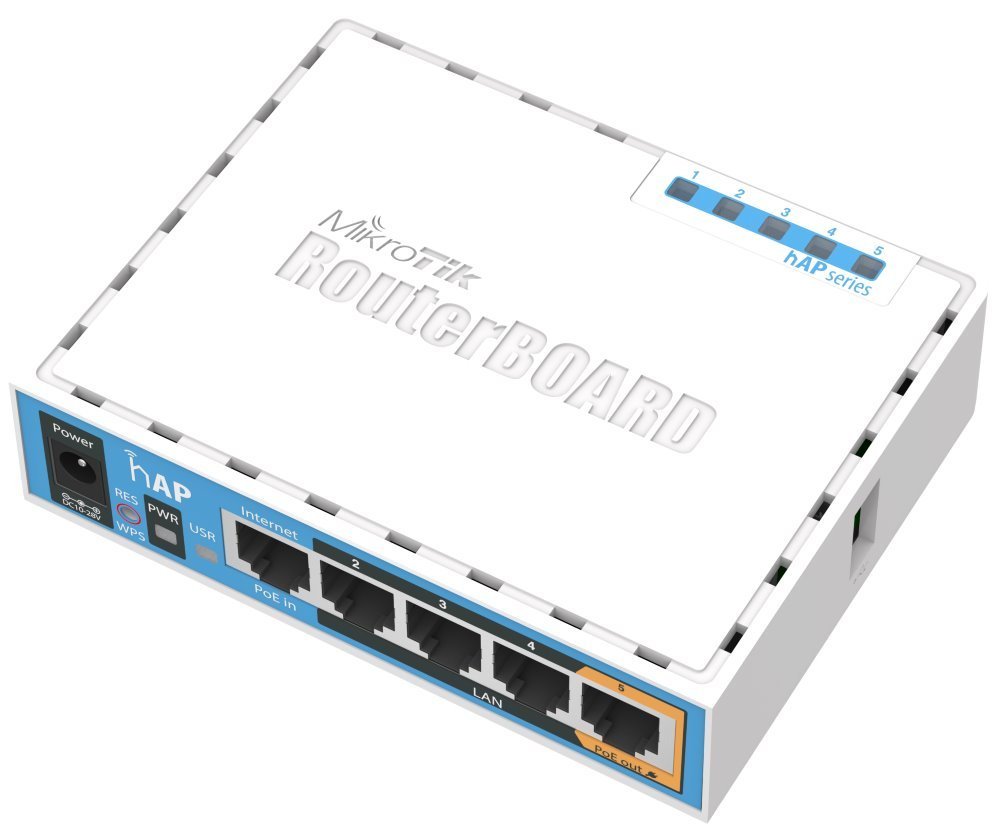 MikroTik hAP je kompaktní síťové zařízení určené pro domácnosti a malé kanceláře, kde potřebujete spolehlivý bezdrátový přístup a několik kabelových připojení. Vychází z osvědčeného modelu RB951-2n a přináší vylepšení v mnoha oblastech. Zařízení je vybaveno dual-chain 2.4 GHz Wi-Fi s podporou standardů 802.11b/g/n a maximální rychlostí 300 Mbit/s.