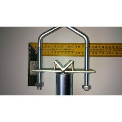 Držák vhodný k připevnění na stožár nebo svislou trubku, pro uchycení satelitních parabol a větších antén. Povrchová úprava: galvanický zinek.