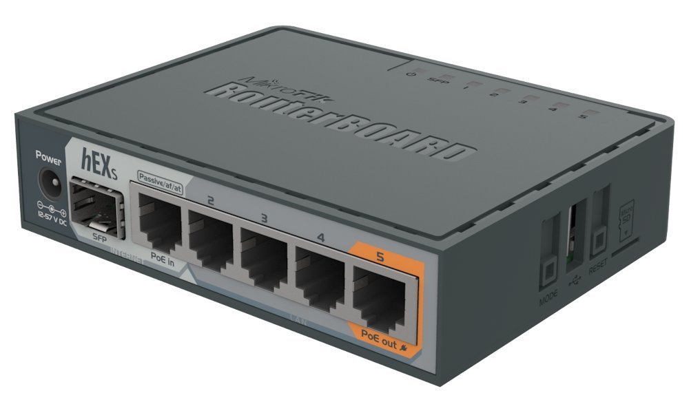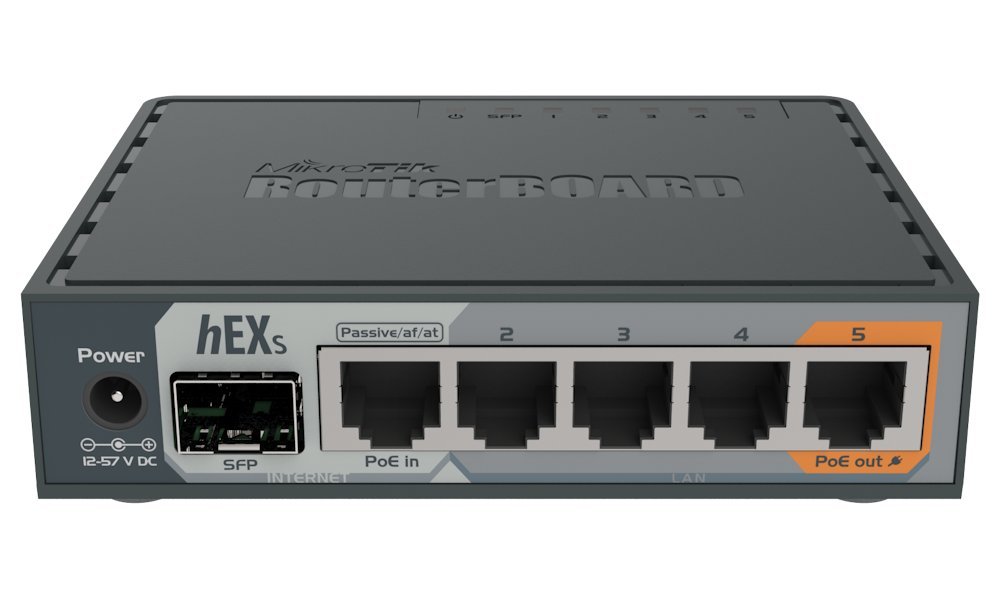 RouterBoard hEX S (RB760iGS) s procesorem MediaTek MT7621A (Dual-Core 880 MHz), 256 MB RAM paměť + 16 MB storage (Flash). Disponuje 1,25 Gb/s SFP portem, díky kterému je možné připojit optický miniGBIC modul. RouterBoard podporuje PoE vstup i 1× PoE výstup.