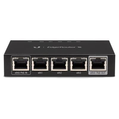 Součástí balení je napájecí adaptér 12 V/0,5 A. EdgeRouter X je možné napájet i pasivním PoE injektorem 24 V (min. 12 W, viz související produkty) na portu PoE In. V případě použití injektoru na vstupu lze napájet další zařízení AirMax nebo UniFi s podporou PoE 24 V z portu PoE Out.