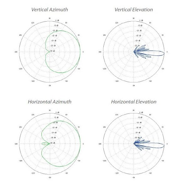 Vyzařovací úhel antény je 137° (6 dB) v horizontální polarizaci a 118° (6 dB) ve vertikální polarizaci.