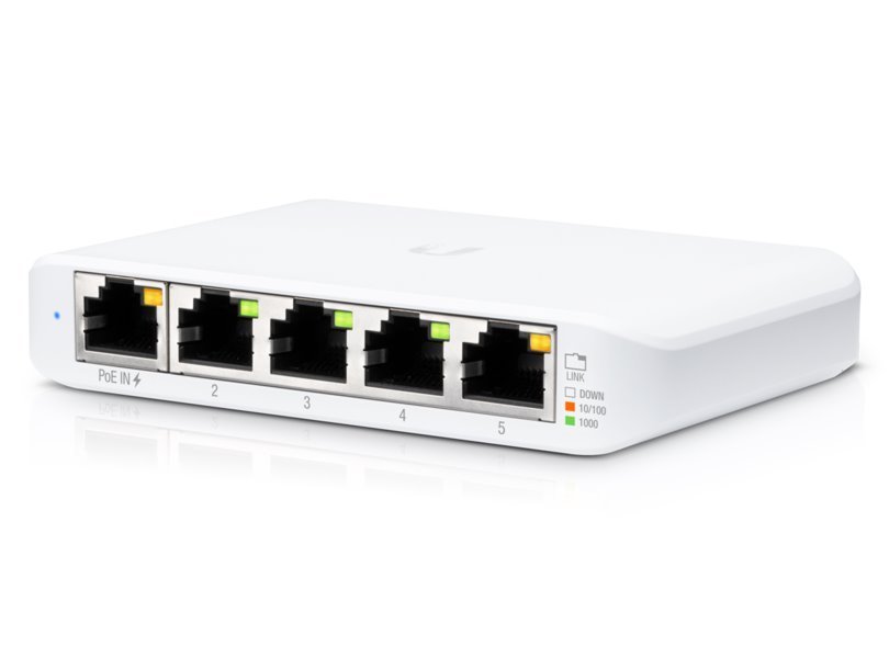 Gigabitový 5portový UniFi Switch (USW-Flex-Mini) je flexibilní mini přepínač se smart managementem. Napájení pomocí přiloženého USB-C adaptéru nebo PoE vstupu na prvním portu (802.3af/at).