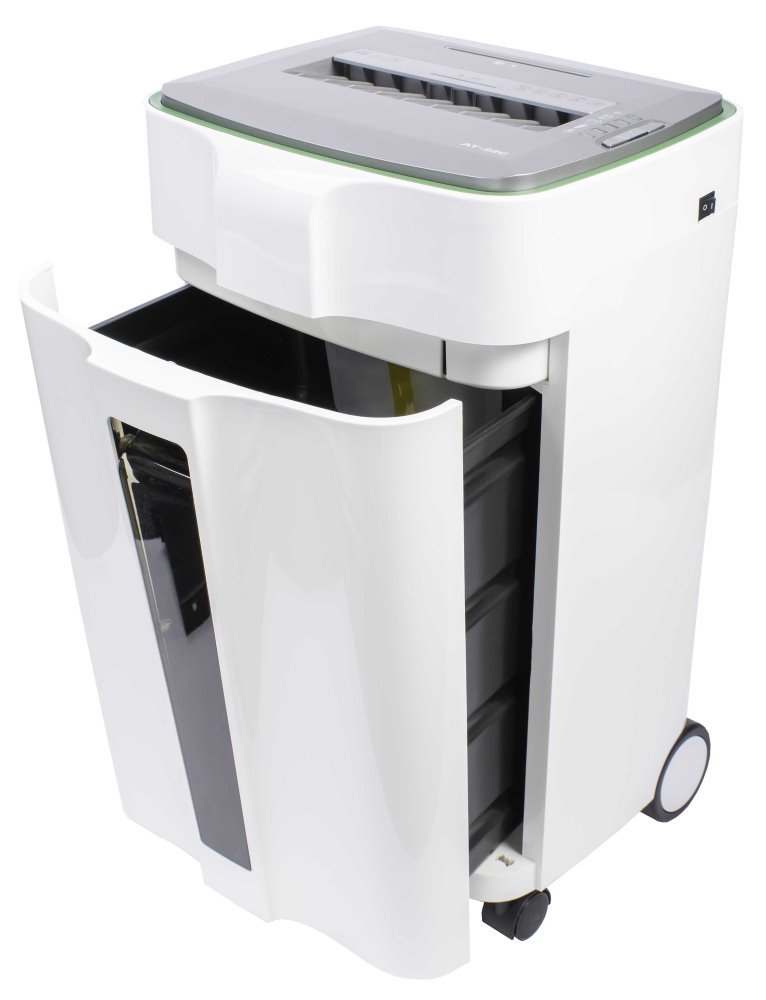 Skartovací stroj atraktivního designu pro střední kanceláře. Je vhodný pro skartaci dokumentů o šířce až 230 mm. Stroj je standardně vybaven automatickým systémem start/stop, zpětným chodem, tepelnou pojistkou motoru proti přehřátí a signalizací přeplněného koše. Příležitostně lze skartovat sešívací sponky a díky oddělenému vstupu i kreditní karty a CD. Odpadní nádoba o objemu 30 l je vybavena průhledným okénkem pro optickou kontrolu. Praktická pojezdová kolečka usnadňují manipulaci.