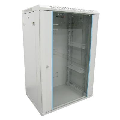 Rozvaděč, 19", na stěnu, jednodílný, výška 15U, 600 x 450, dveře prosklené, šedý