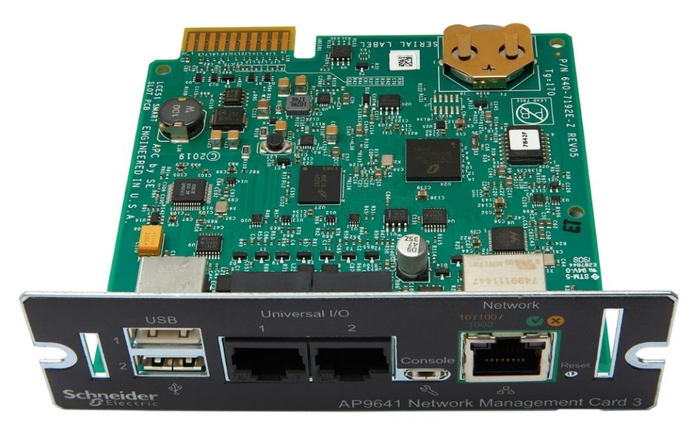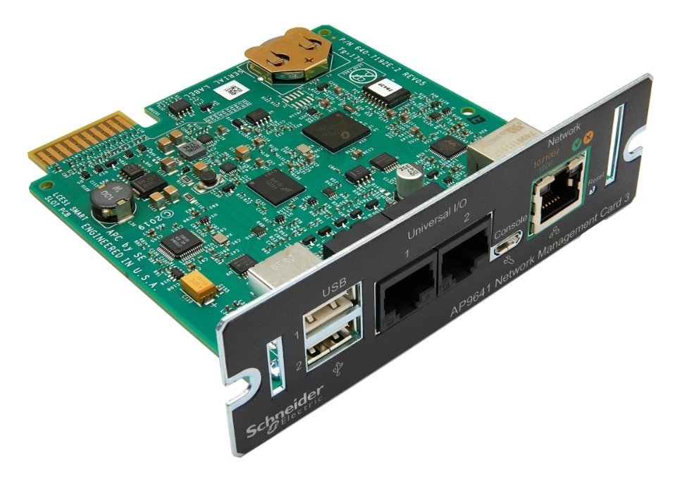 Síťová karta pro vzdálené monitorování a řízení jednotlivého zdroje UPS díky jeho přímému připojení do sítě. Nabízí vzdálenou správu pomocí protokolů telnet a SSH, zabezpečené připojení prostřednictvím protokolu HTTPS/SSL, SSH (až 2048bitové šifrování) a SNMP verze 3. Modul dále podporuje reporting informací o UPS systémům správy budovy nebo jiným řídícím systémům třetí strany prostřednictvím protokolu Modbus TCP, přístup přes webový prohlížeč až pro 8 uživatelů najednou a přes síťové rozhraní příkazového řádku až pro 3 uživatele najednou.