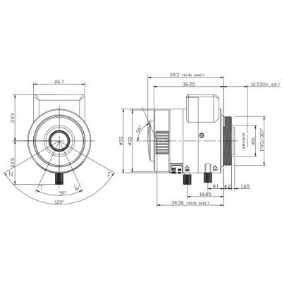 Objektiv s automatickou clonou typu DC Drive, ručním zaostřením, ručně nastavitelnou ohniskovou vzdáleností f = 2,8-12 mm, světelnost F = 1.4, montáž CS, obrazový formát 1/2,7", úhel záběru 106 až 32°, IR přizpůsobení, vhodný i pro 2,0 Mpix kamery.