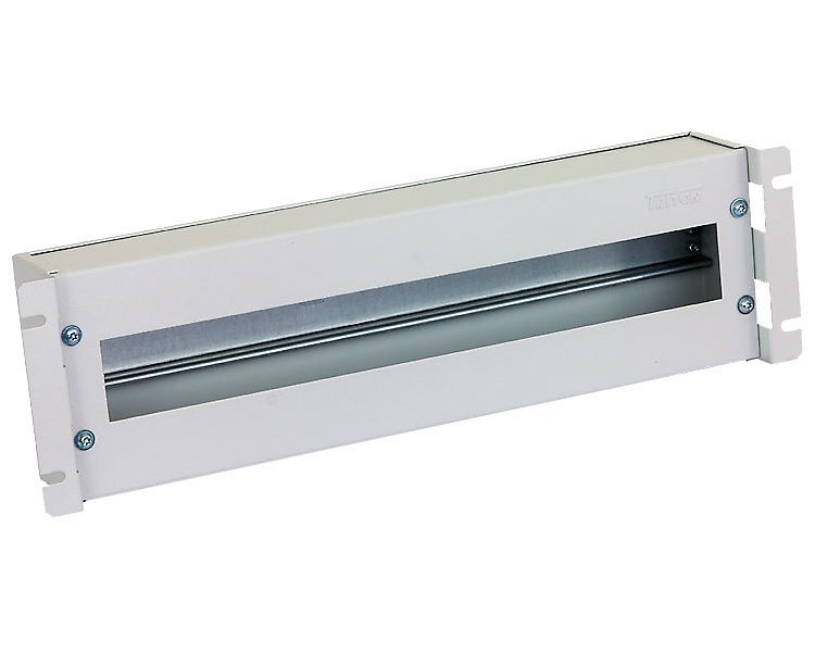 Lišta pro umístění 22 modulů ve skříni rack o šířce 19" s výškou 3U. Je vybavená krytem a lištou DIN.