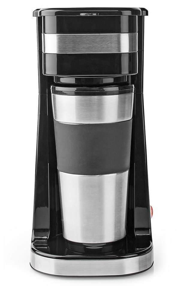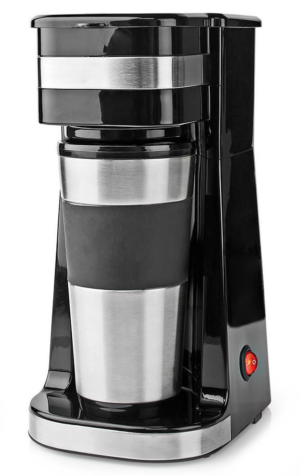 Kávovar, 700W, na jeden hrnek, kapacita 0,42l, černo-stříbrný + dvoustěnný cestovní hrnek