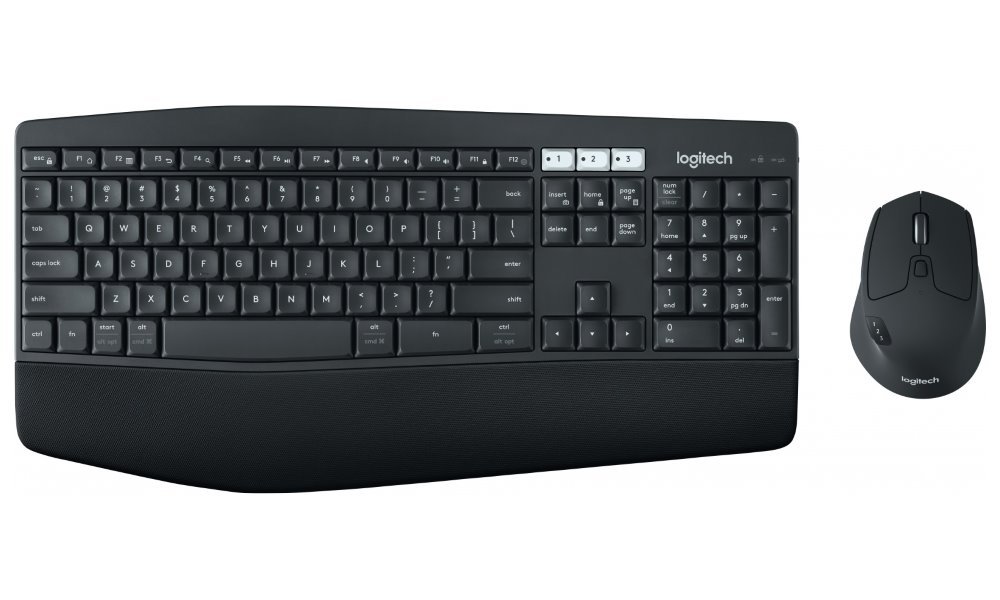Bezdrátový set, se kterým si budete moci vychutnat pohodlí a jednoduchost běžného rozvržení klávesnice standardní velikosti. Disponuje polstrovanou opěrkou zápěstí a robustními sklopnými nožkami. Bezproblémový multitasking umožňuje přepínání mezi třemi připojenými zařízeními. Optická myš je vybavena 8 tlačítky a přesným senzorem s rozlišením 1000 dpi. Připojení k počítači je realizováno bezdrátově skrze Bluetooth nebo miniaturní USB přijímač Logitech Unifying na vzdálenost až 10 metrů.
