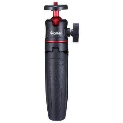 Kompaktní stativ s 360° otočnou kulovou hlavou určený pro akční kamery Rollei, mobilní telefony a kompaktní fotoaparáty. Pomocí trojnožky jej lze použít jako klasický stativ, ve složeném stavu lze jednoduše natáčet stabilizovaná videa z ruky, nebo můžete využít teleskopického vysunutí na délku až 25,2 centimetrů a používat stativ jako selfie tyčku. Nosnost stativu je 1200 g.