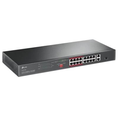 Switch nabízející 16 portů RJ-45 s podporou PoE a celkovým napájecím výkonem až 150 W, 2 gigabitové porty RJ-45 a 1 kombinovaný gigabitový SFP slot. Přepínací kapacita dosahuje až 7,2 Gbps a rychlost směrování až 5,36 Mpps. S rozšiřujícím režimem dosahuje PoE přenos vzdálenosti až 250 m, je tak ideální pro nasazení rozsáhlého dohledu pomocí IP kamery. Díky prioritnímu režimu na portech 1 až 8 je zaručena kvalita citlivých aplikací, jako je video monitoring v kritických oblastech podnikání.
