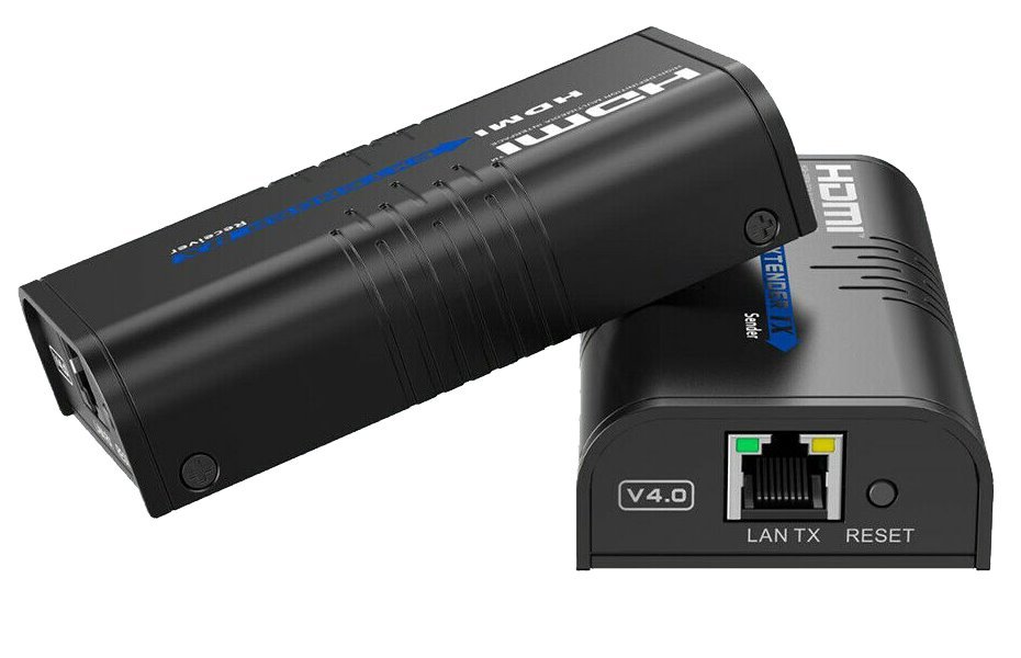 Pár jednotek vysílač a přijímač, které dovolují přenos HDMI videa po Ethernetových sítích. Typicky je vhodný pro digital signage aplikace a přenos komprimovaného HDMI signálu. Přenosová vzdálenost pro 1080 px při 60 Hz: Cat5 - 80 m, Cat5e - 100 m, Cat6 - 120 m.
