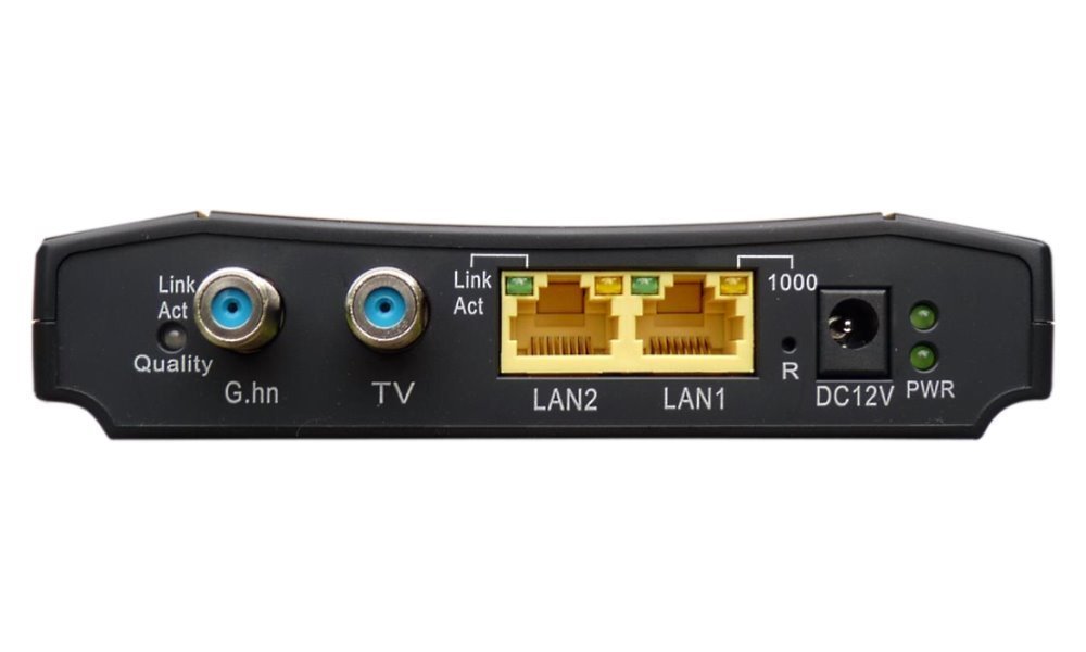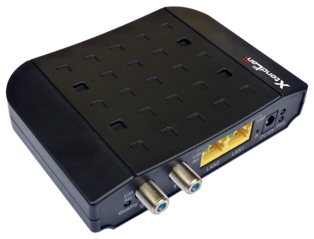 Ethernet bridge standardu G.hn pro koaxiální rozvody, Slave jednotka, signálová rychlost až 2 Gbps, více zařízení na společném koaxiálním vodiči, koexistuje s DVB-T/T2, určeno zvláště pro rozvody STA.