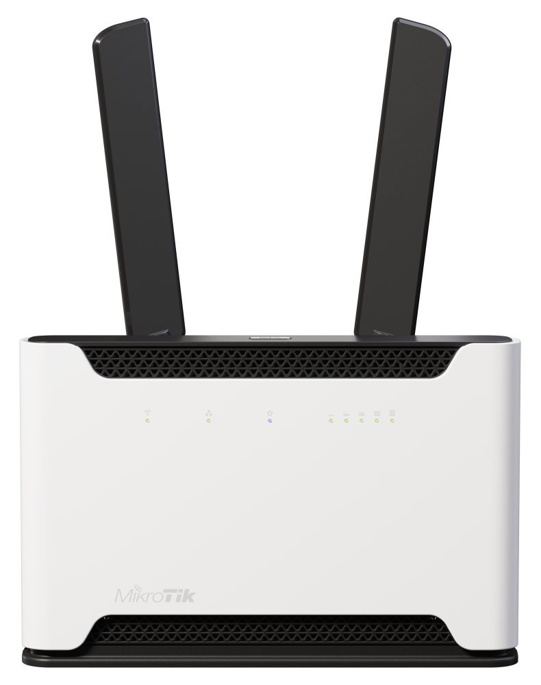 Domácí vysokorychlostní 5G router pracující v pásmech 2,4/5 GHz, LTE a 5G. Podporuje standard 802.11a/b/g/n/ac a TR-069 pro vzdálenou správu. V 5G pásmu dosahuje přenosových rychlostí až 5 Gbps pro downlink a 650 Mbps pro uplink. Dvě externí antény se ziskem 5,5 dBi zajišťují stabilní bezdrátové připojení a optimální pokrytí. MikroTik Chateau 5G disponuje pěti GbE porty, jedním USB 2.0 portem a microSIM slotem.