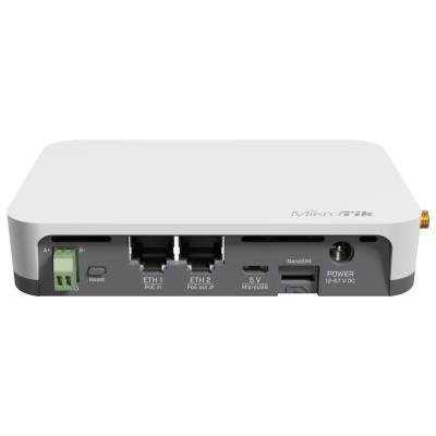 IoT brána, LoRa, CAT-M/NB, Bluetooth, 2× LAN, 1× SIM, 3× SMA (F), microUSB, Wi-Fi 2,4GHz 802.11b/g/n, RouterOS L4