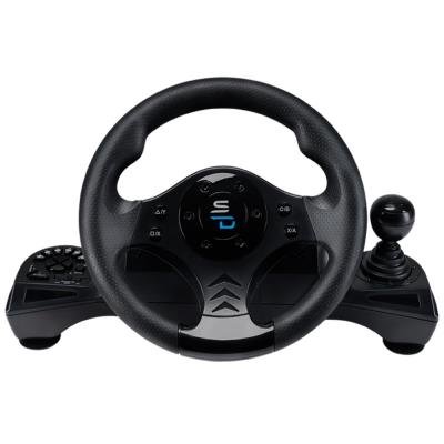 Set SUPERDRIVE GS750 obsahuje vše pro komplexní řízení virtuálního vozu. Tato sada obsahuje volant, pedály a řadicí páku, abyste dosáhli maximálně autentického zážitku ze řízení vozu. Volant disponuje 270° úhly otáčení, díky čemuž se přizpůsobí každému jízdnímu stylu. Nezáleží na tom, jestli jedete střídmě a na jistotu, nebo se snažíte prchnout před policií. Nastavitelné úrovně citlivosti vám umožní hrát v arkádovém stylu i v plné simulaci. Základna je na spodní straně vybavena přísavkami, díky čemuž volant s řadicí pákou pevně drží na svém místě.