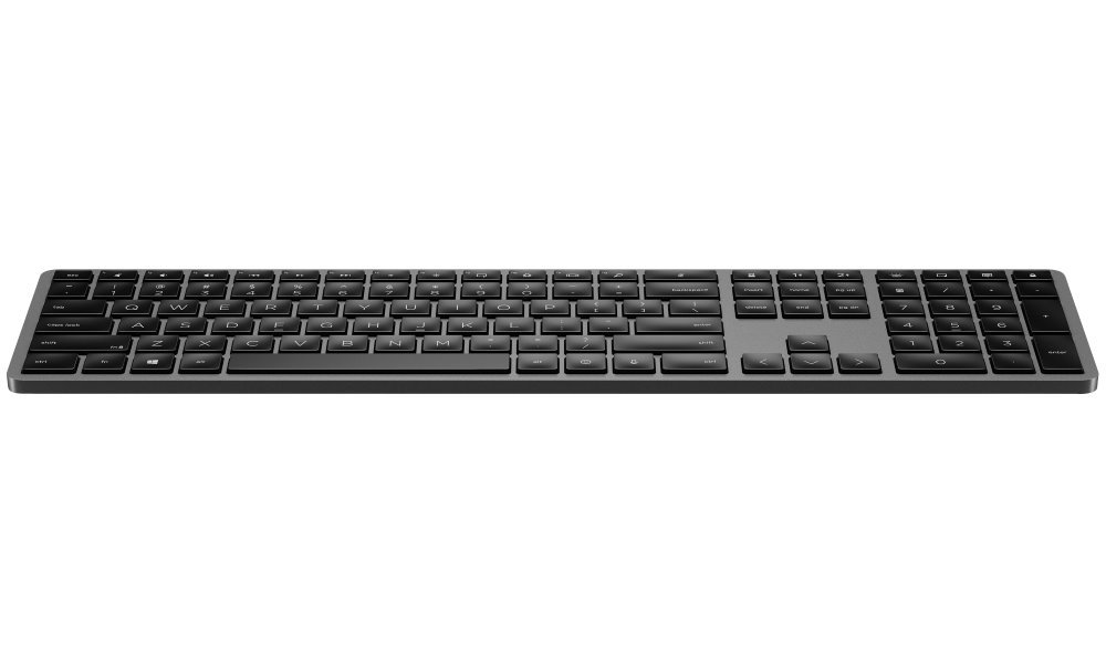 Bezdrátová klávesnice HP 975 Dual-Mode, kterou připojíte až ke 3 zařízením skrze rozhraní Bluetooth (2 zařízení) nebo miniaturní USB přijímač (1 zařízení). Disponuje klávesami s nízkým profilem a jejich design podporuje pohodlné a tiché psaní. Numerický blok zajišťuje také precizní a rychlé zadávání číselných znaků. Dále je doplněna multimediálními klávesami pro okamžité ovládání hlasitosti nebo přehrávání multimédií. Podsvícení kláves automaticky upravuje zabudovaný senzor okolního osvětlení, takže bez problémů můžete pracovat za jakéhokoli světla a také do hlubokých nočních hodin.