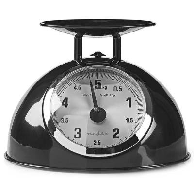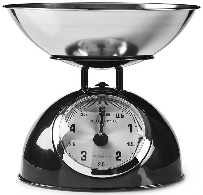 Kuchyňská váha, analogová, do 5kg, přesnost na 25g, nerezová ocel, včetně mísy, černá