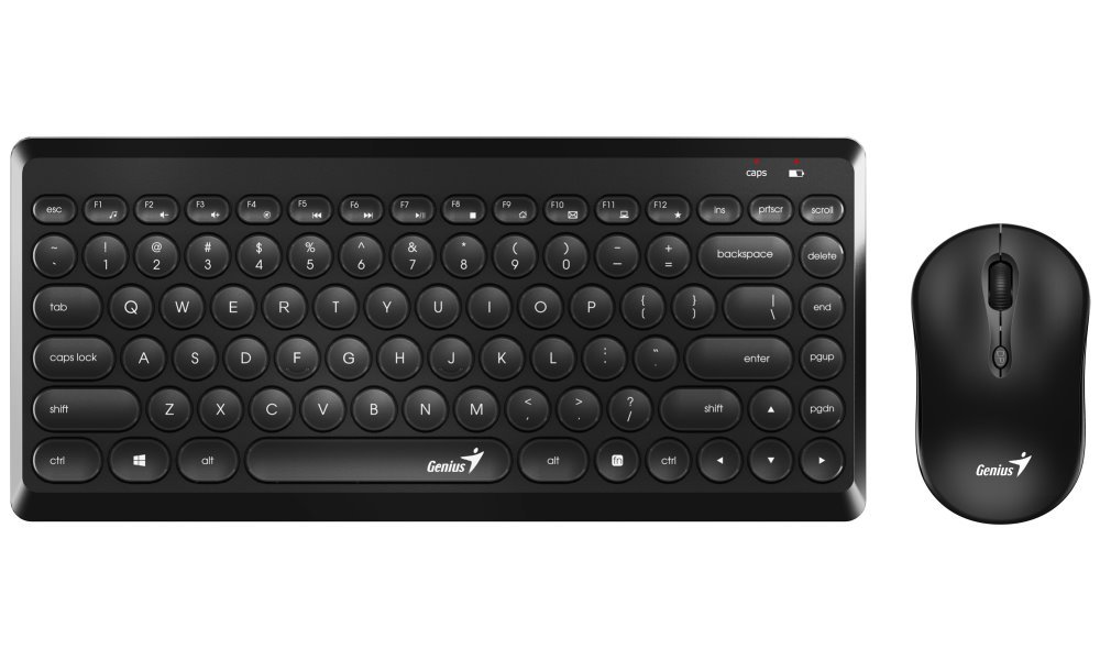 Bezdrátový set klávesnice a myši GENIUS LuxeMate Q8000 pro snadnou a pohodlnou práci a ovládání zařízení. Klávesnice Genius je opatřena klávesami s nízkým profilem pro rychlé a komfortní psaní. Funkční klávesy usnadní ovládání médií a podpoří efektivní kancelářskou činnost nebo surfování po internetu. Myš Genius disponuje senzorem s rozlišením až 1600 dpi, která umožňuje plynulý a přesný pohyb po pracovní ploše. Ergonomický design podpoří pevné a pohodlné uchopení. Celý set GENIUS LuxeMate Q8000 připojíte bezdrátově skrze miniaturní USB adaptér.