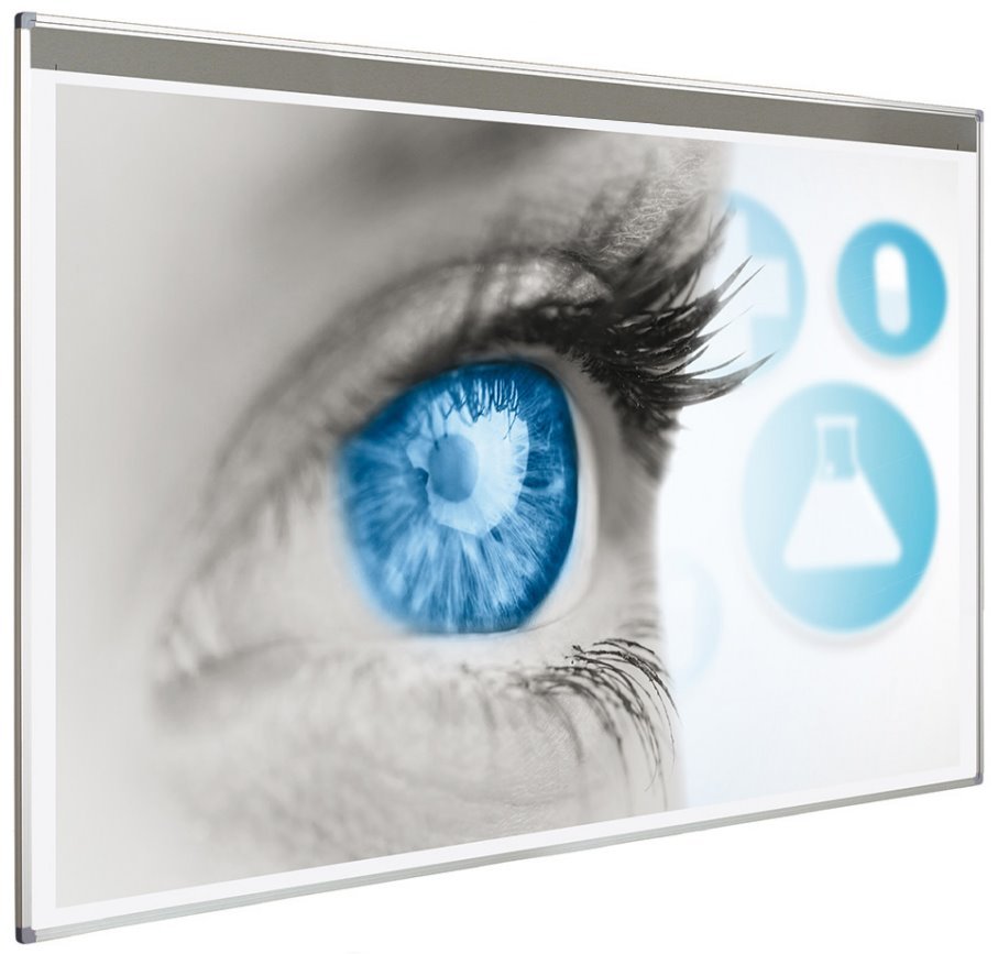 Magnetická projekční tabule s matným bílým povrchem ze smaltované oceli určená pro interaktivní projektory. Pro optimální využití projekční plochy disponuje šedým pruhem k umístění dotykového senzoru. Vhodná pro montáž na stěnu a projekci. Eloxovaný hliníkový rám z měkké slitiny je doplněný syntetickými rohovými kryty.