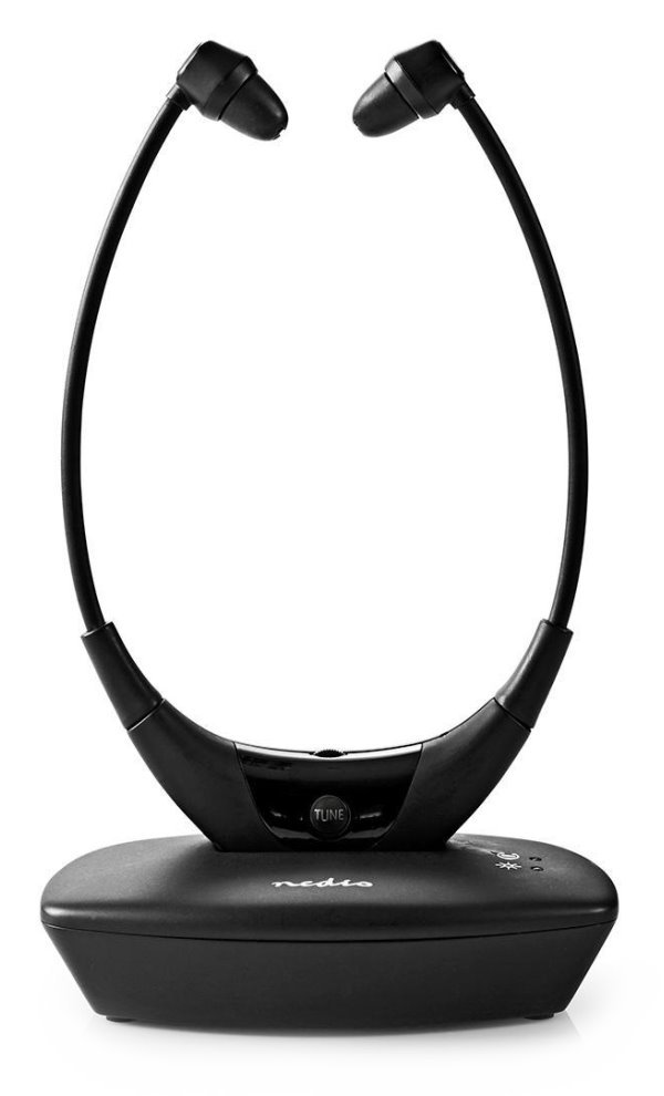Bezdrátová sluchátka do uší Nedis HPRF010BK pro komfortní poslech hudby nebo sledování TV v maximálním soukromí. Sluchátka umožňují přijímat signál na vzdálenost až 35 metrů, díky čemuž se můžete volně pohybovat po místnosti. Na jedno nabití zvládne až 4 hodiny provozu, takže si můžete dopřát slušný maraton svého oblíbeného seriálu.