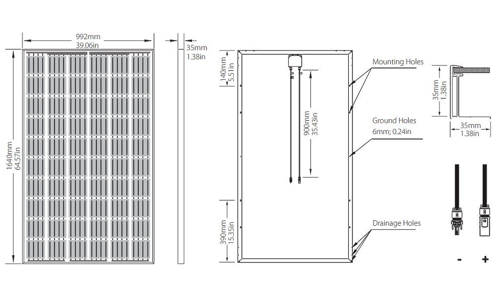 Voděodolný výstup má integrované bypass diody pro ochranu před zpětným proudem a je vysoce odolný proti extrémním projevům počasí jako jsou vysoké a nízké teploty, námraza, silný déšť nebo vítr.