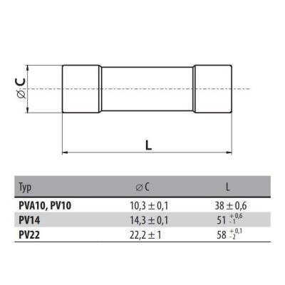 Pojistka, válcová, typ PV14, 16A, charakteristika gG, 14x51, AC 690V, DC 250V