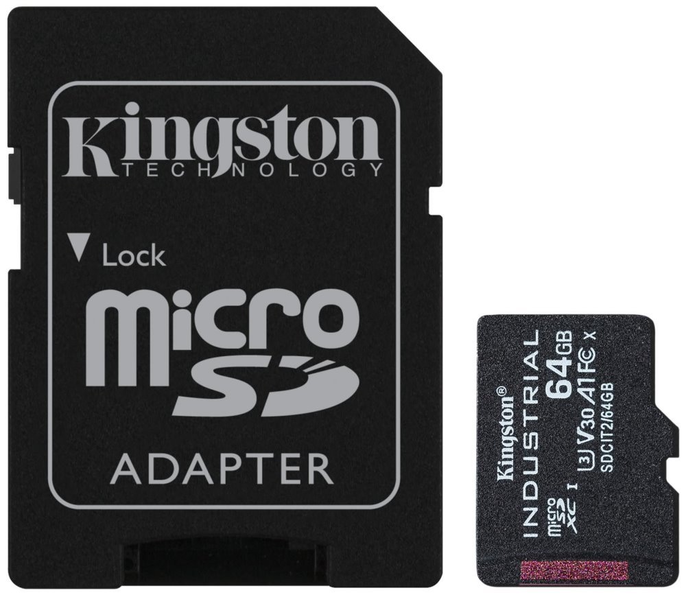Paměťové úložiště splňuje také certifikace V30 a A1 pro efektivní provoz Android aplikací ve vysoké rychlosti, bez zpoždění a sekání. Kapacita úložiště 64 GB poskytuje neormní prostor pro velmi náročné použití a ukládání množství dat ve vysokém rozlišení. Uplatní se jako paměťová karta v mobilních zařízeních nebo kamerách. Součástí balení je SD adaptér, díky kterému kartu Kingston Industrial jednoduše připojíte k PC nebo notebooku skrze čtečku.