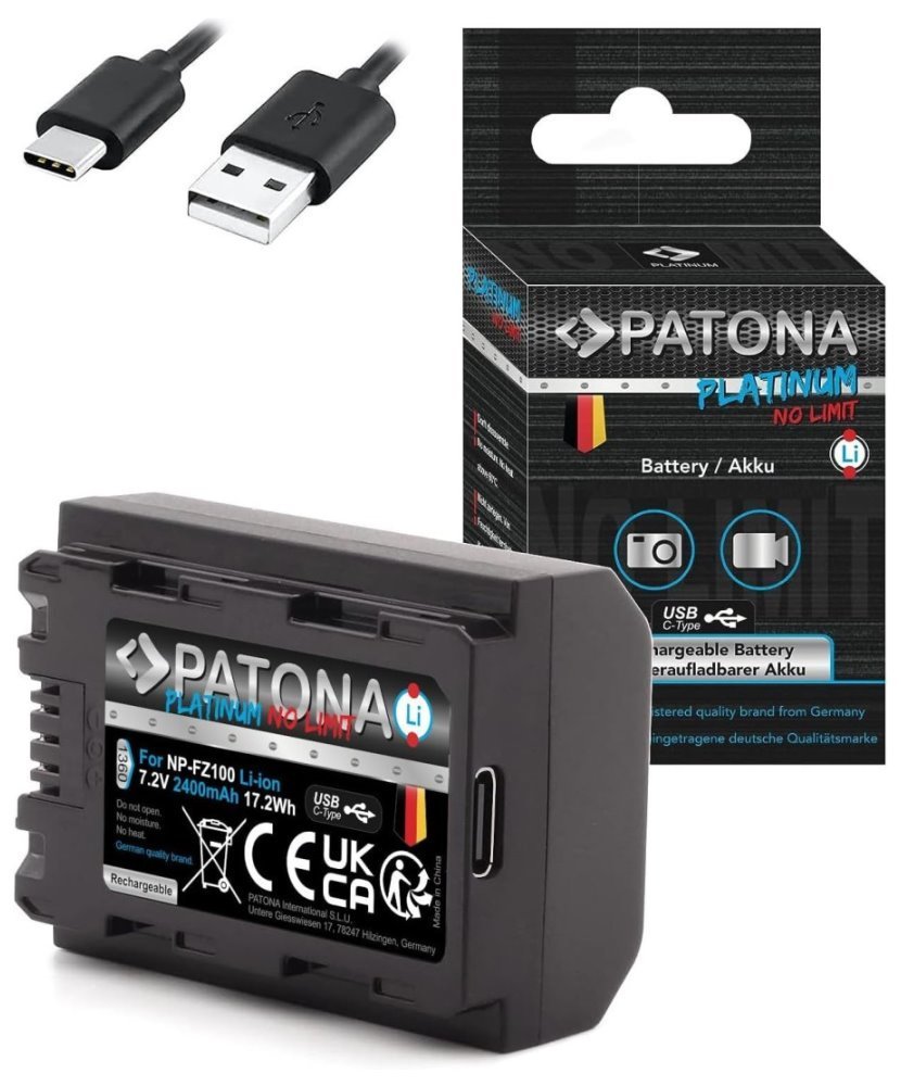 Kompatibilní baterie pro fotoaparáty Sony. Baterie se vyznačují vysokou kvalitou, mají integrovanou ochranu proti přetížení, přebití a přehřívání. Nabíjení baterie je realizováno skrze zabudovaný konektor USB-C. Lze ji nabíjet připojením kabelu do USB-C konektoru (např. z počítače, powerbanky či nabíječkou na mobilní telefon) tak i v klasické nabíječce na Li-ion. Nabíjecí proud max. 1,2 A (vyšší vstupní proudy jsou automaticky redukovány pomocí IC ovládání baterie).