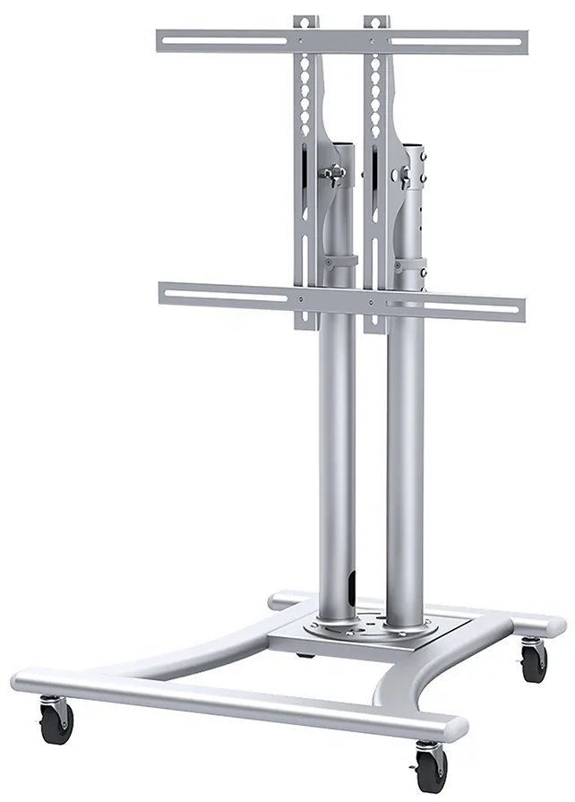 Stojan, pojízdný, VESA, pro LCD a TV 27"–70", nosnost 50kg, výška 80–120cm, náklon 15°, stříbrný