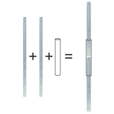 Konektor, pro prodlužovací tyče, nosnost 50kg, výška 17,2cm, průměr 6cm, ocel, stříbrný