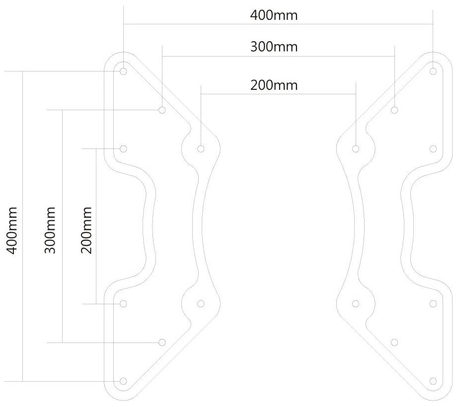 VESA: 200 × 200, 200 × 300, 200 × 400, 300 × 300, 400 × 400 mm
