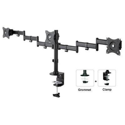 Flexibilní stolní VESA držák pro 3 ploché LCD monitory o velikosti 10" až 27" a hmotnosti do 24 kg (3× 8 kg). Držák je manuálně výškově nastavitelný v rozmezí od 0 do 49,8 cm. Stolní držák je vhodný pro obrazovky, které splňují vzor otvorů VESA 75 × 75 nebo 100 × 100 mm. Různé vzory otvorů lze pokrýt pomocí VESA adaptérů. Veškerý instalační materiál je součástí výrobku.