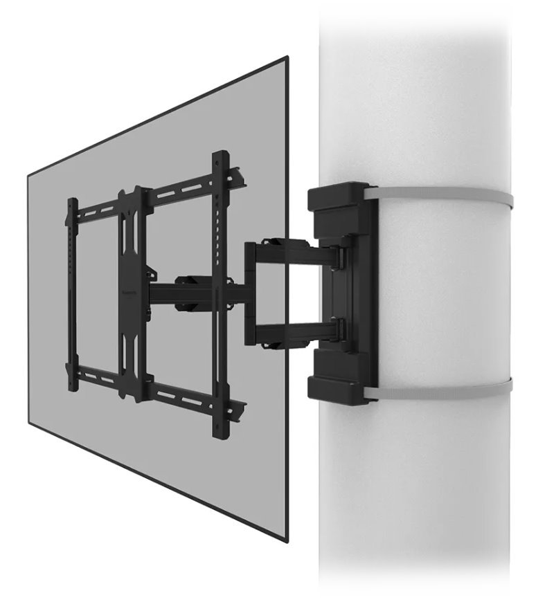 Plně pohyblivý sloupový držák pro obrazovky s úhlopříčkou 40" až 70" a maximální hmotností 45 kg. Všestranná technologie naklápění, otáčení a rotace umožňuje vytvořit optimální pozorovací úhel. Držák má hloubku 8,2–59 cm a je vhodný pro obrazovky, které odpovídají vzoru otvorů VESA 200 × 100 až 600 × 400 mm. Popruh o délce 350 cm a ráčnová svorka zajišťují snadnou instalaci, stejně jako samostatná magnetická vodováha, která je součástí balení.