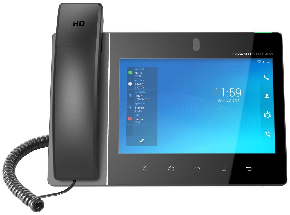 Výkonný drátový VoIP telefon s dotykovým 8" displejem, zabudovanou kamerou s rozlišením 1920 x 1080 při 30 fps a dvěma HD mikrofony. GXV3480 je pokročilé konferenční řešení, které kombinuje funkce 16linkového IP telefonu a funkce Android tabletu a nabízí tak all-in-one komunikační řešení. K dispozici je telefonní seznam na 2000 kontaktů a podpora XML a LDAP seznamů. Zařízení dále disponuje dvěma gigabitovými porty s podporou PoE/PoE+, integrovaným Wi-Fi/Bluetooth připojením, možností 12cestné audiokonference či 3cestné videokonference a operačním systémem Android 11. Telefon je vybaven 4jádrovým procesorem ARM Cortex A55 (2,0 GHz), 4 GB RAM a 16 GB eMMC paměti. Pro poskytování cloudových služeb a centralizovanou správu je telefon podporován systémem Grandstream’s Device Management System (GDMS), který poskytuje centralizované rozhraní pro konfiguraci, provisoning, správu a monitorování nasazených koncových bodů. Součástí balení je i napájecí adaptér, síťový kabel a hadřík na čištění obrazovky.