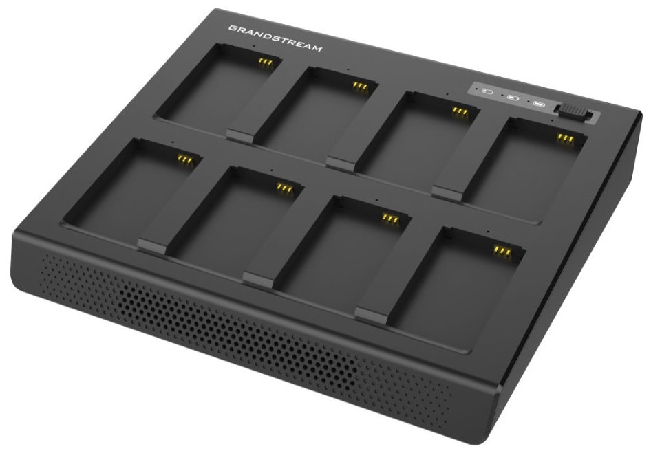 Nabíječka baterií pro bezdrátové VoIP telefony Grandstream. Je vybavena 8 nezávislými sloty s LED indikátory pro baterie a třemi režimy nabíjení/vybíjení; pro transport (20-30 %), skladování (60 %) a plné nabití (100 %). Vestavěný ventilátor reguluje teplotu nabíječky a zabraňuje přehřátí. Samozřejmostí je také integrovaná ochrana proti přepětí, přebíjení, přehřátí, nadproudu a zkratu.