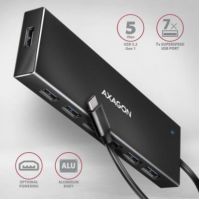 USB Hub, externí, 7× USB 3.0, 0,3m, hliníkové tělo, černý