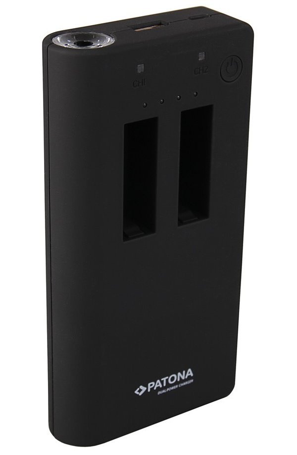 S nabíječkou Patona lze nabíjet současně 2 baterie GoPro Hero 4 najednou. Tato nabíječka slouží zároveň i jako powerbanka s kapacitou 7500 mAh, která je schopna nabíjet i další zařízení přes USB výstup, např. mobilní telefon. LED integrovaná lampa vám zase pohodlně posvítí na cestu. Nabíječky jsou vyráběny dle nejvyšších evropských standardů kvality a vyznačují se extrémně dlouhou životností, ochranou proti přehřátí a přebíjení.
