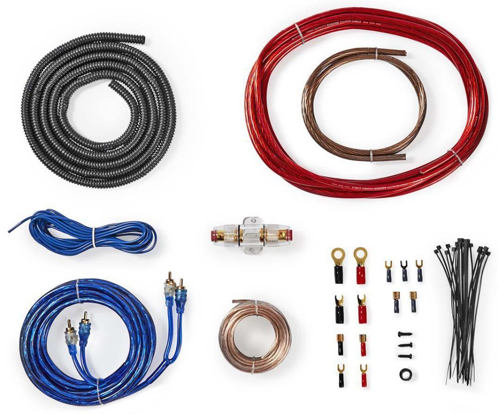Sada audiokonektorů, kabelů a veškerého příslušenství potřebného k instalaci zesilovače do automobilu. Pozlacené konektory zajistí skvělý přenos zvukového signálu. Určeno pro soustavy s příkonem až 800 W.