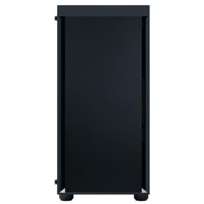 Průhledná bočnice se jednak podílí na stylovém vzhledu celé skříně, jednak umožňuje snadný přístup do skříně, kontrolu součástek a případnou kontrolu nebo upgrade. Předinstalovaná dvojice 120mm ventilátorů podporuje zlepšené proudění vzduchu, současně nabízí dostatek prostoru pro instalaci výměníku vodního chlazení na přední straně. Na horní straně panelu najdete jednoduše přístupné konektory.