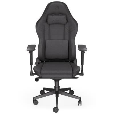 Herní židle s lehkou konstrukcí a ergonomickým designem. Židle je potažena látkovou tkaninou. Kvalitní polstrování zad a sedáku poskytuje dobrou oporu a pohodlí, které potřebujete při dlouhém sezení u počítače. Navíc disponuje polštářky z paměťové pěny. Židle nabízí úhel sklonu až 150°, možnost houpání a výškově nastavitelné opěrky rukou s rotací či horizontálním posunem. Nosnost je až 120 kg.