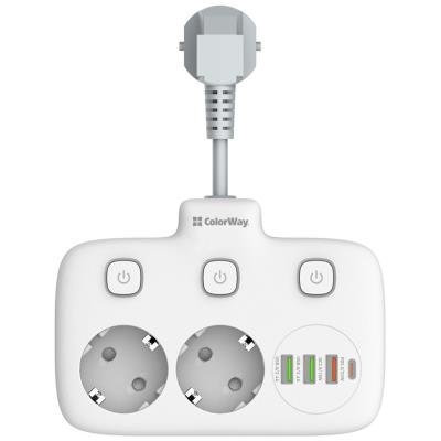 Kompaktní prodlužovací přívod se dvěma Schuko zásuvkami, třemi USB porty a jedním USB-C konektorem. Lze s ním tedy připojit nejen elektrické spotřebiče, ale současně nabíjet až čtyři mobilní zařízení z USB portů. Funkce Auto ID automaticky rozpozná typ připojeného zařízení a určí tak vhodný nabíjecí proud. Mezi podporované nabíjecí protokoly patří PD 2.0/3.0 PPS, Quick Charge 2.0/3.0, Apple Fast Charge, Huawei FCP, Samsung SFC/AFC a Xiaomi Turbo charge. Zásuvky a USB výstupy jsou vybaveny praktickým tlačítkem pro zapnutí a vypnutí. Tělo přívodu je vyrobeno ze žáruvzdorného plastu, který odolá teplotám až do 850 °C. Samozřejmostí je uzemnění a přepěťová ochrana.