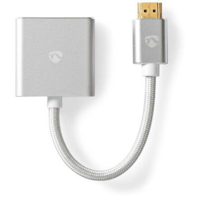 Adaptér, zástrčka HDMI, zásuvka VGA, zásuvka 3,5mm jack, hliník, stříbrný, box, 20cm